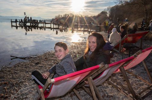 Kann man besser ins neue Jahr starten? Susanne Thienel und ihr Sohn Sebastian waren schlau – und sicherten sich am Samstag Plätze direkt am Ufer des Starnberger Sees. Während sie bereits die herrliche Aussicht in Possenhofen genießen konnten, musste der Papa in der langen Schlange an Steg 1 Geduld b
