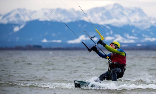 Der Wintersturm Ein Kitesurfer nutzt das stürmische Wetter und fegt bei Herrsching über den Ammersee. Vor allem in Norddeutschland richtete Sturmtief „Nadia“ schwere Schäden an. Jetzt rückt der Süden in den Fokus: Meteorologen erwarten in den Alpen ergiebige Schneefälle. Foto: Sven Hoppe/dpa