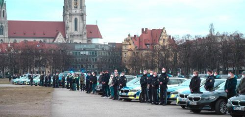 Schweigendes GedenkenMit einer Schweigeminute gedachten gestern in ganz Deutschland Polizisten ihrer zwei am Montag von Wilderern erschossenen Kollegen. Das ganze Land hielt inne in stillem Gedenken an die Opfer eines schrecklichen Verbrechens. So auch auf der Münchner Theresienwiese, wo sich 150 Po