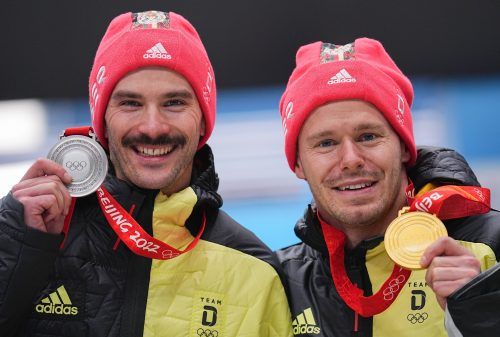 Die Skeleton-Fahrer haben bei den Peking-Winterspielen die deutsche Erfolgsserie im Eiskanal von Yanqing fortgesetzt. Christopher Grotheer (Oberhof/auf dem dpa-Foto rechts) und Axel Jungk (Oberbärenburg) feierten am Freitag einen Doppelsieg. „Ich habe jahrelang davon geträumt“, sagte der Thüringer S