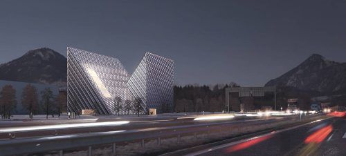 Mit dem gestrigen Spatenstich haben die Bauarbeiten für den neuen Firmensitz der Bergsportmarke Dynafit in Kiefersfelden begonnen. Im Gewerbegebiet direkt neben der Autobahn A93 soll für rund 25 Millionen Euro das Bauwerk entstehen, das wie zwei gläserne Bergzacken in den Himmel ragt. „Wir beginnen