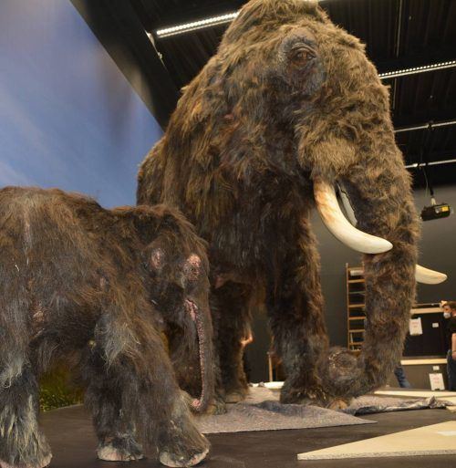 Die Saurier sind Geschichte – jetzt ziehen die Mammuts (Foto: Stöppler) ein: Die Vorbereitungen für die neue Ausstellung „Eiszeit“ im Rosenheimer Lokschuppen laufen bereits auf Hochtouren. Ab Freitag, 18. März, haben die Besucher die Möglichkeit, eine Familie durch ein Jahr in der Eiszeit zu begleit