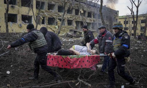 Geburtsklinik unter Beschuss Nachrichten aus dem Krieg sind meist schrecklich, doch der russische Angriff auf eine Geburtsklinik in der ukrainischen Hafenstadt Mariupol hat riesiges Entsetzen ausgelöst. Auf dem Bild tragen Retter eine verletzte schwangere Frau aus der Klinik. Das Gebäude wurde offen