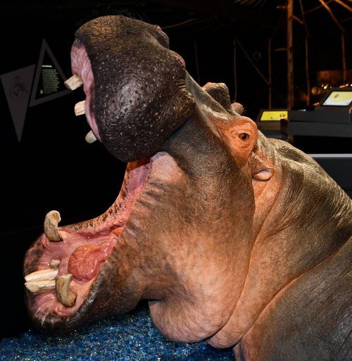 Da bleibt einem doch der Mund offen stehen! Während der Eiszeit gab es Flusspferde (Foto: Schlecker) in der Region!? Ja! Allerdings besiegelte die Eiszeit auch das Ende dieser Tierart in Europa. Weitere spannende Fakten über die Eiszeit können die Besucher des Rosenheimer Ausstellungszentrums Loksch