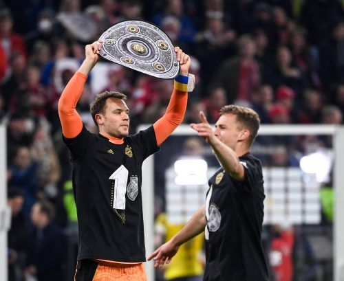 Thomas Müller bekommt die begehrte Meister-Trophäe (Foto: dpa/Hoppe) nach dem Heimspiel gegen den VfB Stuttgart am Sonntag bereits zum elften Mal. Für Trainer Julian Nagelsmann ist es die ersehnte Premiere. Er freue sich darauf, „die Schale in die Hand zu nehmen. Vielleicht mache ich vorher noch ein
