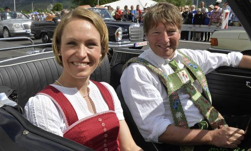 Die Tunnelpatin von OberauDie Ex-Biathletin Magdalena Neuner schaute gestern zur Probefahrt vorbei. Im Oldtimer-Cabrio von Martin Sielmann fuhr sie durch den neu eröffneten Tunnel von Oberau. 3000 Menschen aus der Regionen waren an dem historischen Tag vor Ort.    Foto: Thomas Sehr