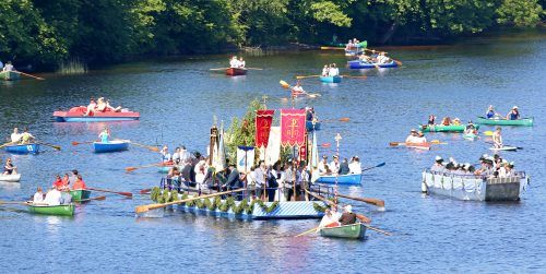 Bangen um die SeeprozessionWenn das Wetter mitspielt, kann am Donnerstag endlich wieder die traditionelle Fronleichnamsprozession auf dem Staffelsee (Kreis Garmisch-Partenkirchen) stattfinden. Die letzte Seehausener Prozession war 2019 (unser dpa-Bild). Danach hatte Corona die Feier verhindert. Die
