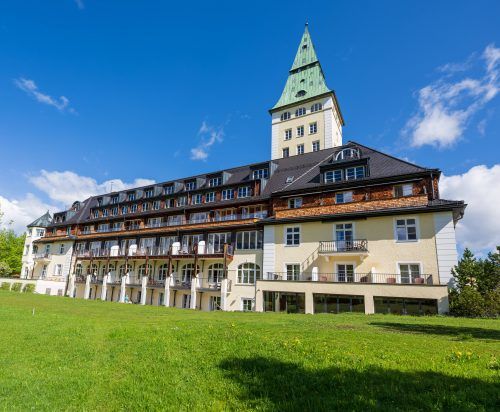 Ab Sonntag beraten die Chefs der G7-Staaten im Elmauer Tal zum zweiten Mal nach 2015 über die weltpolitische Lage. Die Luxushotels Schloss Elmau (Foto: Kneffel/dpa) und das Kranzbach beherbergen die Staatschefs und deren Delegationen. In dieser Ausgabe stellen wir den Tagungsort ausführlich vor (Sei