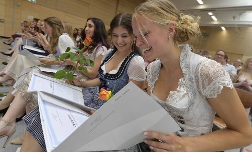 Geschafft! Saskia (rechts) und ihre Freundin Christina freuen sich riesig. Gestern bekamen die beiden Schülerinnen vom Gymnasium Oberhaching, wie 35 000 weitere junge Menschen in ganz Bayern, ihre Abiturzeugnisse überreicht. „Endlich frei“, jubelten viele und stürzten sich in einen Feier-Marathon. S