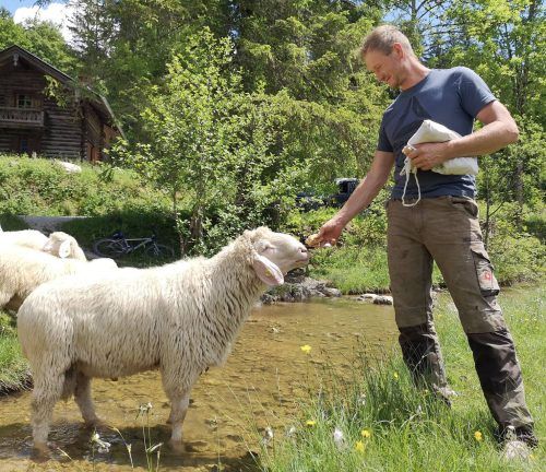 Hans Hibler, Chef der Werdenfelser Bergschafzüchter, füttert eines seiner Tiere. Wie viele andere Viehhalter hat er seine Schafe über Nacht von der Sommerweide geholt, nachdem in der Region am Mittwoch erneut drei gerissene Tiere entdeckt worden sind. Noch ist unklar, welches Tier die Schafe totgebi