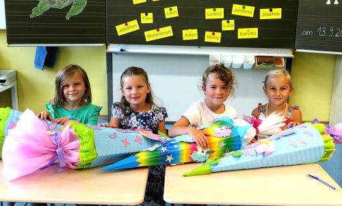 Jetzt geht’s losLexie, Josefina, Johanna und Karlotta können es kaum abwarten. Heute beginnt für die vier Freundinnen aus Hohenfurch im Landkreis Weilheim-Schongau – wie für rund 130 000 weitere Kinder in Bayern – die Schule. Ihre Schultüten liegen schon bereit. Foto: Herold