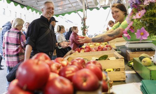 Bauernmarkt – mitten in der StadtKnackige Äpfel, wie hier am Stand von Ehrle Obst, herzhafter Speck oder knuspriges Brot: Am Sonntag gab es jede Menge Schmankerl auf Bayerns größtem Bauernmarkt am Münchner Odeonsplatz zu entdecken. FOTO: REHLE