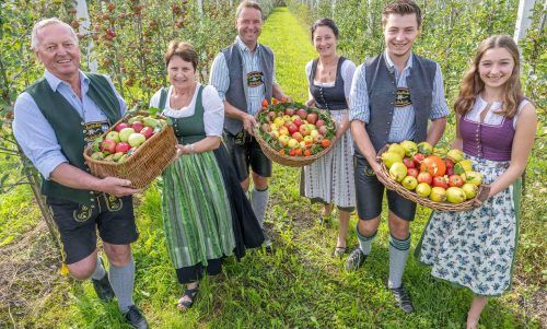 Zum AnbeißenSie heißen Julia, Resi oder Jonathan. Nicht die Obstbauern und -bäuerinnen auf diesem Foto sind gemeint, sondern die Apfelsorten, die so benannt sind. Die Familie Seebacher aus Bad Feilnbach hat 2000 Obstbäume – jetzt zu Erntedank am Sonntag ist die Arbeit fast abgeschlossen. Foto: Plett