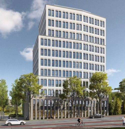 Wenn es 2024 fertiggestellt ist, wird es mit 45 Meter das höchste Gebäude in Rosenheim sein. Gebaut wird bereits seit April an dem neuen „Lokhöfe“-Quartier am Bahnhofsgelände Nord in Verlängerung der bisherigen Neubauten. Gestern legte man nun den symbolischen Grundstein für den zehnstöckigen „Busin