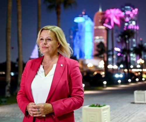 Bundesinnenministerin Nancy Faeser (Foto: dpa) wird zur Fußball-WM nach Katar reisen. Das hat sie während ihrer laufenden Katar-Reise beschlossen. Das Auftaktspiel der Deutschen gegen Japan (23. 11.) wird sie im Stadion verfolgen. Von Premierminister Chalid bin Chalifa Al-Thani habe sie die Garantie