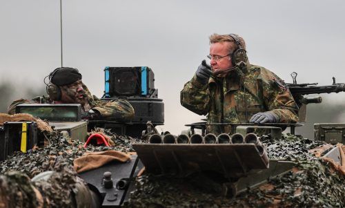 Leopard-Schnuppertraining Der Verteidigungsminister bildet sich fort. Bei seinem Besuch bei der Bundeswehr im westfälischen Augustdorf stieg Boris Pistorius (SPD) selbst auf einen Leopard-2-Panzer, von denen Deutschland bald 14 an die Ukraine liefert – der Minister kündigte schnellen Ersatz an.