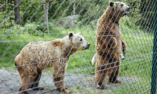 Warten auf Gaia?Sieht fast so aus, als würden diese zwei Braunbären im Gehege des Bären-Gnadenhofs Bad Füssing schon Ausschau nach der Bärin Gaia halten. Das Tier, das mutmaßlich einen Jogger in Italien getötet hat, soll nach Niederbayern umgesiedelt werden, wenn ein Gericht zustimmt. Foto: Uwe Lein
