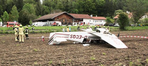 Das ist das Wunder von Bad Endorf: Nach einem missglückten Start vom Flugplatz des Luftsportvereins stürzte gestern ein Kleinflugzeug in ein angrenzendes Feld, überschlug sich und blieb auf dem Dach liegen. Die vier Insassen – darunter ein siebenjähriges Mädchen – konnten sich leicht verletzt aus de