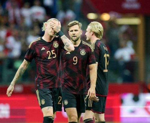 Die deutsche Nationalmannschaft (Foto: dpa) hat auch im zweiten von drei Länderspielen zum Saisonabschluss nicht gewonnen. Vier Tage nach dem 3:3 in Bremen gegen die Ukraine verlor das Team von Bundestrainer Hansi Flick am Freitag in Warschau gegen Polen mit 0:1 (0:1). Den entscheidenden Treffer erz