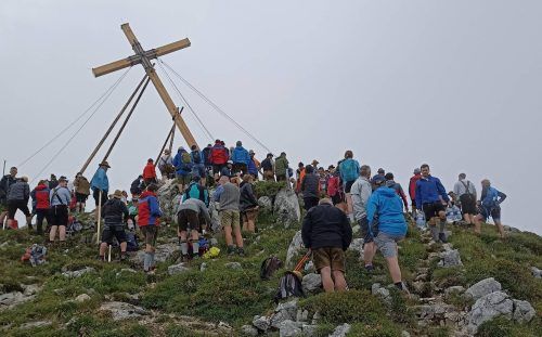 Die Benediktenwand hat seit dem Wochenende wieder ein Gipfelkreuz. Mit purer Muskelkraft haben rund 200 Helfer das 1,4 Tonnen schwere Kreuz nach oben getragen. Als es am Sonntag aufgestellt war, sangen sie gemeinsam das Benediktenwand-Lied und sprachen ein Gebet. Das alte Kreuz hatte nach 65 Jahren