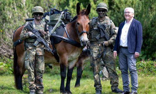 Truppenbesuch mit Muli Bundespräsident Frank-Walter Steinmeier (re.) hat am Dienstag die Gebirgsjägerbrigade 23 in Bad Reichenhall besucht. Er dankte den Soldaten für ihre Auslandseinsätze in den vergangenen Jahren und betonte ihre wichtige Rolle beim anstehenden Abzug aus Mali. F.: sven hoppe/dpa