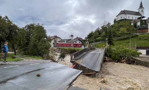 Heftige UnwetterEine Brücke ist in der Nähe der Stadt Kamnik in Slowenien nach Starkregen eingestürzt. Wegen eines Dammbruchs mussten hunderte Menschen in Sicherheit gebracht werden. Mindestes drei Menschen kamen ums Leben. Auch im österreichischen Kärnten gab es ein Todesopfer. Foto: dpa