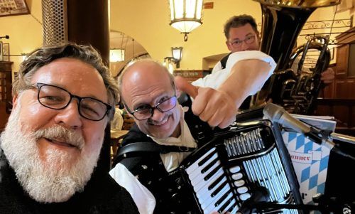 Hollywood bei den HolledauernRussell Crowe war am Sonntag zu Gast im Münchner Hofbräuhaus. Der weltbekannte Schauspieler genoss das bayerische Essen und ließ sich zu einem Selfie mit der Hauskapelle aus der Holledau hinreißen. Das Foto veröffentlichte er im Netz. Foto: Russell Crowe