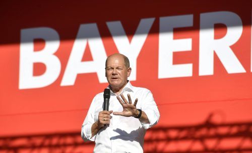 Der Kanzler kämpft in MünchenDie Stimmung war gereizt auf dem Marienplatz, als Bundeskanzler Olaf Scholz am Freitagabend unter großen Sicherheitsauflagen bei einer Wahlkampfveranstaltung der Bayern-SPD auftrat. Der Kanzler verteidigte ungewohnt emotional seine Ukraine-Politik. Foto: Marcus Schlaf