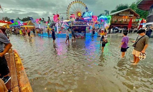 Land unter auf dem HerbstfestKnöcheltief standen die Besucher des Rosenheimer Herbstfestes am Samstag nach einem Unwetter im Wasser. Andernorts in Bayern haben nicht nur extreme Regenfälle, sondern bis zu zehn Zentimeter große Hagelkörner für zahlreiche Schäden gesorgt. Laut Wetterbericht bleibt es