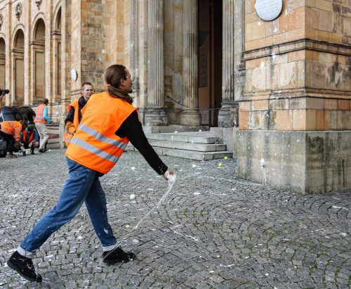 Klima-Aktivisten haben am Mittwoch das Gebäude des Landtags mit in Farbe getunkten Tennisbällen beworfen. Um die zehn Menschen seien beteiligt gewesen, sagte ein Polizeisprecher. Die Polizei habe sie mitgenommen, unter anderem um die Personalien aufzunehmen. Die Verwaltung des bayerischen Landtags k