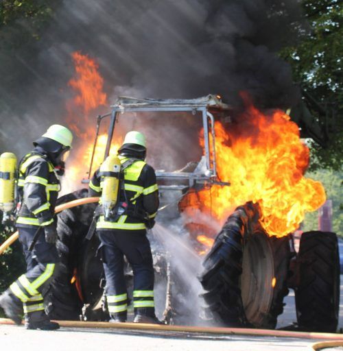 Traktor geht plötzlich in Flammen auf