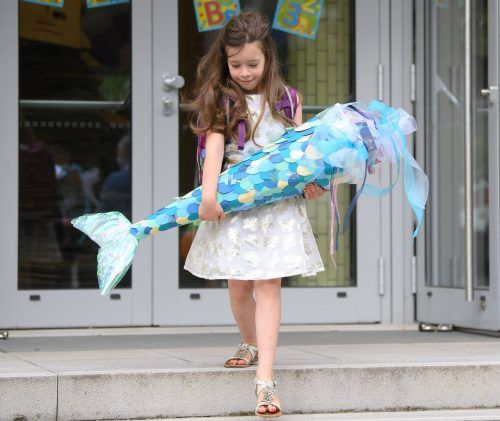 Schultüten versüßen den Start in den neuen Lebensabschnitt. Diese Erstklässlerin trägt ihre Meerjungfrauenschwanz-Tüte ganz vorsichtig in ihren Händen. Mit 133 000 anderen Mädchen und Buben wird sie heute eingeschult. Für die Kinder dürfte es ein besonderer Tag werden, vor allem, wenn sie als erste