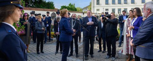 Zum 35. Todestag des ehemaligen bayerischen Ministerpräsidenten Franz Josef Strauß am 3. Oktober versammelten sich Politprominenz, Bürger und Medien auf dem Friedhof in Rott, um seiner zu gedenken. Tochter Monika Hohlmeier (am Mikrofon) meinte, dass ihr Vater „in dieser Zeit der politischen Extreme“