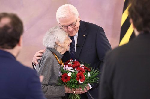 Zuspruch vom Präsidenten Es ist eine ergreifende Szene: Bundespräsident Frank-Walter Steinmeier nimmt im Schloss Bellevue die Holocaustüberlebende Margot Friedländer in den Arm, die kürzlich ihren 102. Geburtstag feierte. Steinmeier rief alle arabischstämmigen Menschen in Deutschland zu einer klaren