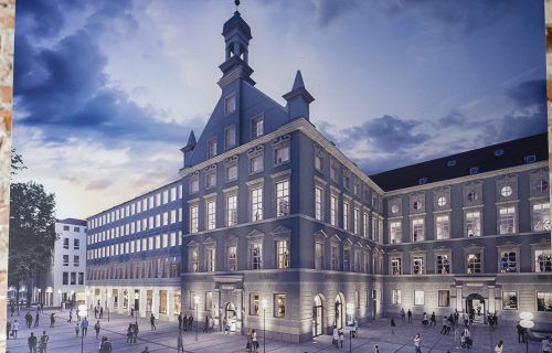 Alte Akademie: Baustopp!Schock für München: Auch am wichtigsten Bauprojekt des taumelnden Immobilienkönigs René Benko in Bayern ruhen jetzt die Bauarbeiten, wie die Immobilienzeitung meldet. So wie auf diesem Bild sollte die Alte Akademie in der Münchner Fußgängerzone eines Tages aussehen.