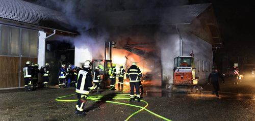 Nach ersten Erkenntnissen der Kriminalpolizei war ein technischer Defekt an einem Lkw die Ursache für einen Brand in einer Fahrzeughalle eines Fuhrunternehmens am späten Dienstagabend in Gars (Foto: fib/Eß). Neben zwei Milchtanklastwägen wurde auch die Fahrzeughalle beschädigt. Der Gesamtschaden sum