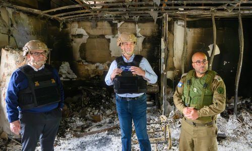 Bedrückende MomenteMit Schutzweste und Helm besuchte Bayerns Ministerpräsident Markus Söder gestern bei seiner Israelreise einen von der Hamas zerstörten Kibbuz. Söder stellte sich hinter den Kampf Israels gegen die Hamas und schloss ein Abkommen mit der Gedenkstätte Yad Vashem. foto: Sven Simon