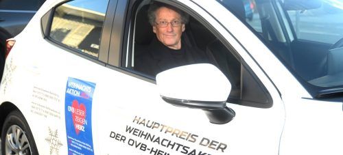 Auf die Zielgerade biegt im neuen Jahr die Weihnachtsaktion „OVB-Leser zeigen Herz“ ein. Zu gewinnen ist dabei dieser neue Mazda. Das Bild zeigt den Priener Kabarettisten, Schauspieler und Musiker Uli Bauer – vielen bekannt durch seine Rolle als Double von Münchens Ex-OB Christian Ude – in dem Wagen
