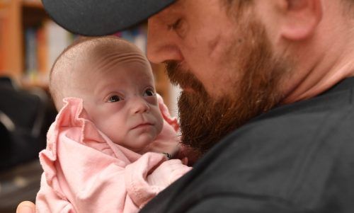 Ein winziges WunderSila wog nur 310 Gramm, als sie vor vier Monaten in der München Klinik in Harlaching auf die Welt kam. Sie ist das kleinste Frühchen aller Zeiten – aber eine große Kämpferin. Inzwischen wiegt sie 2120 Gramm und schaut ihren Papa Selim aus großen Augen an. Foto: Marcus Schlaf