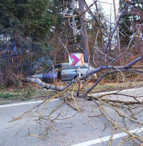 Am Donnerstag gegen 18 Uhr befuhr ein 36-jähriger Mercedes- Fahrer aus dem Landkreis Mühldorf die Staatsstraße zwischen Waldkraiburg und Thann. Er kam von der Fahrbahn ab und kollidierte frontal mit einem Baum. Durch die Wucht des Aufpralls fiel der Baum quer über die Staatsstraße. Die Beamten der P