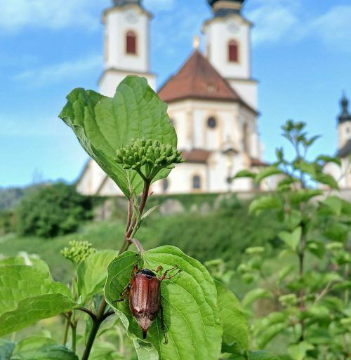 Pünktlich zum 1. Mai hat unser Fotograf Mike Löwa im idyllischen Aschau den ersten Maikäfer des noch frischen Frühlings erwischt. Der dicke braune Brummer aus der Familie der Blatthornkäfer – hier ein männliches Exemplar des Feldmaikäfers – genießt die Sonne und die Wärme vor der malerischen Kulisse
