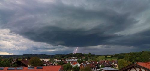 Eine Superzelle, die sich wie hier auf dem Bild von Feldkirchen aus gesehen über Holzkirchen bildete, zog am vergangenen Montag durch den südlichen Landkreis München, den Landkreis Ebersberg und den nördlichen Landkreis Rosenheim. Neben dem Hagel sorgten auch sintflutartige Regenfälle für Überschwem