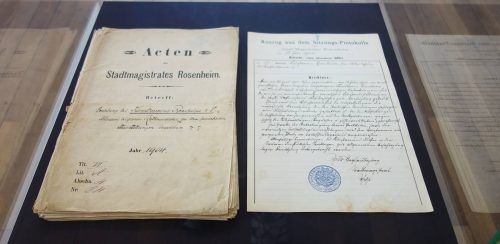 Vor 120 Jahren wurde der Rosenheimer Kunstverein gegründet. Eine Ausstellung in den Räumen des Vereins in der Kunstmühle in der Klepperstraße zeichnet nicht nur die Geschichte des Vereins nach – im Bild die originale Gründungsurkunde (Foto: Friedrich) –, sondern würdigt auch die Rolle des Vereins in