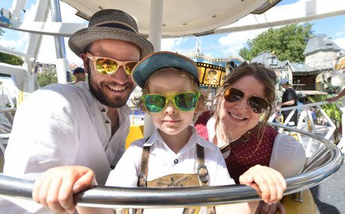Die Zeit der VolksfesteEin hohes kirchliches Fest – Mariä Himmelfahrt am Donnerstag –, dazu viele weltliche Feiern, und über allem Prachtwetter: Bayern steuert auf eine wunderschöne Augustwoche zu. Unser Bild zeigt Marvin, Steffi und Leon (4) auf dem Dachauer Volksfest. Foto: Klaus Haag