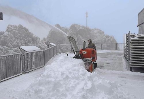 In den bayerischen Alpen gibt es den ersten Schnee: In der Nacht fielen in höheren Lagen mehrere Zentimeter, allen voran auf der Zugspitze. Aber auch unterhalb von 2000 Metern Höhe schneite es, wie auf Aufnahmen vom Brauneck zu sehen war. In den kommenden Tagen kann es auf über 1500 Metern Höhe bis