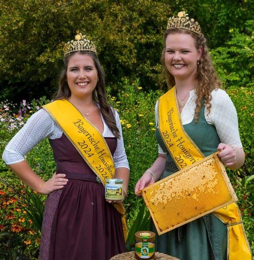 Elena Eberl aus Haag (links) wurde am Sonntag in Ansbach zur bayerischen Honigkönigin für die Jahre 2024 bis 2026 gekrönt. Anja Bürzer aus Pförring steht ihr als Honigprinzessin zur Seite. Beide überzeugten die Jury mit Fachwissen und Leidenschaft für die Imkerei. Die Honighoheiten vertreten rund 34