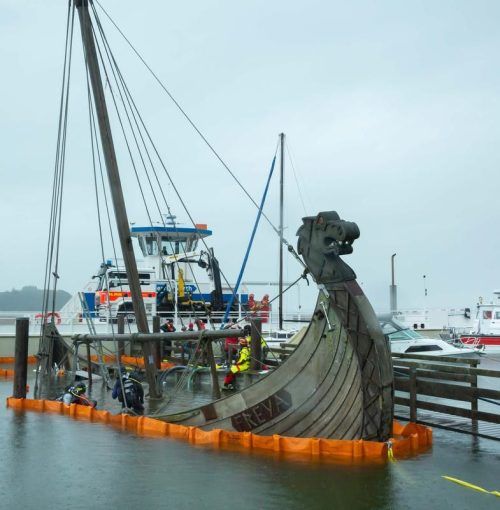 In der Nacht auf Montag ist das Wikingerschiff „Freya“, das am Schramlbad in Prien liegt, gesunken. Die Touristenattraktion wurde umgehend von fast 20 Kräften der Wasserschutzpolizei, Feuerwehr und DLRG geborgen. Ein Autokran war im Einsatz, der auf der staatlichen Lastenfähre der Herreninsel positi
