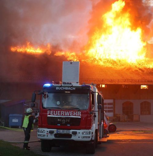 Am Dienstag gegen 18.15 Uhr brach im südlichen Gemeindebereich von Buchbach ein Feuer in einer Lagerhalle aus (Foto: fib/mk). Die Feuerwehr konnte den Brand erst nach mehreren Stunden löschen. Menschen wurden nicht verletzt, aber der Sachschaden wird auf bis zu zwei Millionen Euro geschätzt. Aufgrun