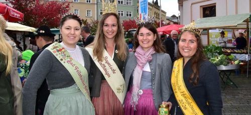 Die Landwirtschaft stand am gestrigen Freitag in Rosenheim im Fokus. Zum 27. Mal wurden bei der Schmankerlstraße regionale Produkte aus bäuerlicher Herstellung angeboten. Mit dabei waren auch königliche Hoheiten: (von links) die Bad Feilnbacher Apfelkönigin Regine Weinzierl, die bayerische Wollkönig