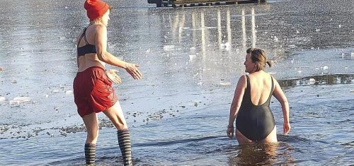 Die Aktiven der Schnaitseer Wasserwacht trafen sich mit Mitgliedern der Wasserwacht-Ortsgruppe Wasserburg zum Jahresanschwimmen am drei Grad kalten Wasser des Weitsees. Zuvor hatten junge Wasserwachtler die dünne Eisdecke gebrochen und so eine eisfreie Schwimmzone geschaffen. Unser Bild zeigt die Le